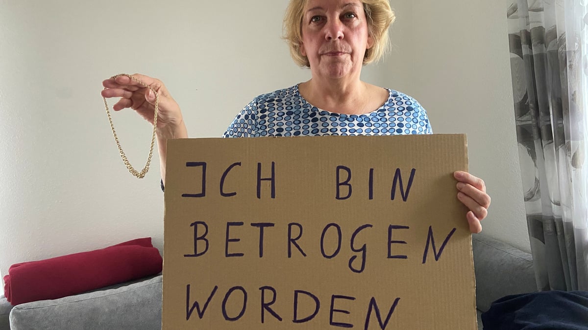 Wenige Tage später erstattete sie auch Anzeige gegen den Juwelier bei der Staatsanwaltschaft Hechingen. Zu Hause fertigt sie ein Plakat mit der Aufschrift: „Ich wurde betrogen.“ Sie ist entschlossen und möchte durch den Bezirk laufen und erzählen, was ihr passiert ist: „Ich möchte die Bürger vor diesem Juwelier warnen“, sagt sie.