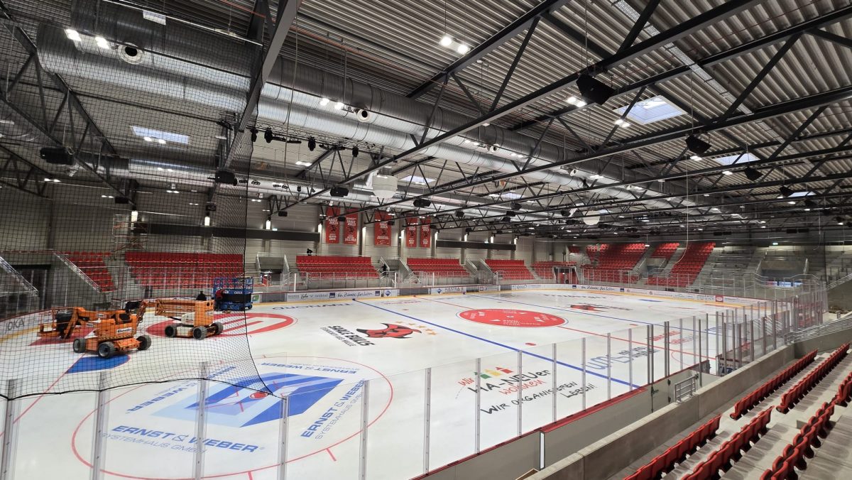 Bis zur letzten Minute wird weitergearbeitet: Heute werden die Lautsprecher installiert, morgen folgt der moderne LED-Videowürfel, der künftig über dem Eis schweben wird. Die Hütten sind noch nicht ganz fertig, ebenso der Geschäftsbereich, der Fanshop und der Schlittschuhverleih. Doch Mischner ist überzeugt, dass er es schaffen kann. „Es ist immer noch viel, aber wir können es schaffen.“ Auch die Kameras für den Livestream und den Videobeweis werden installiert.