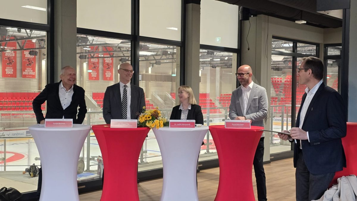 „Wir sind wirklich glücklich“, sagte Sportdezernentin Judith Marquardt. Es erinnerte an die Hochwasserschäden im Jahr 2013, die auch den Abriss der alten Halle zur Folge hatten. „Jetzt, zwölf Jahre später, haben wir endlich eine Eiskuppel, die fast fertig ist.“ Die Arbeiten wurden rund um die Uhr durchgeführt, nicht nur von den beteiligten Unternehmen. „Hier ist viel ehrenamtliches Engagement im Spiel.“ Es ist außerdem die einzige Eissporthalle in Sachsen-Anhalt. „Hier kommt die ganze Stadt zusammen, ebenso wie das Umland.“ Neben dem Profisport werden auch Breitensport, Schulsport und Freizeitaktivitäten angeboten.