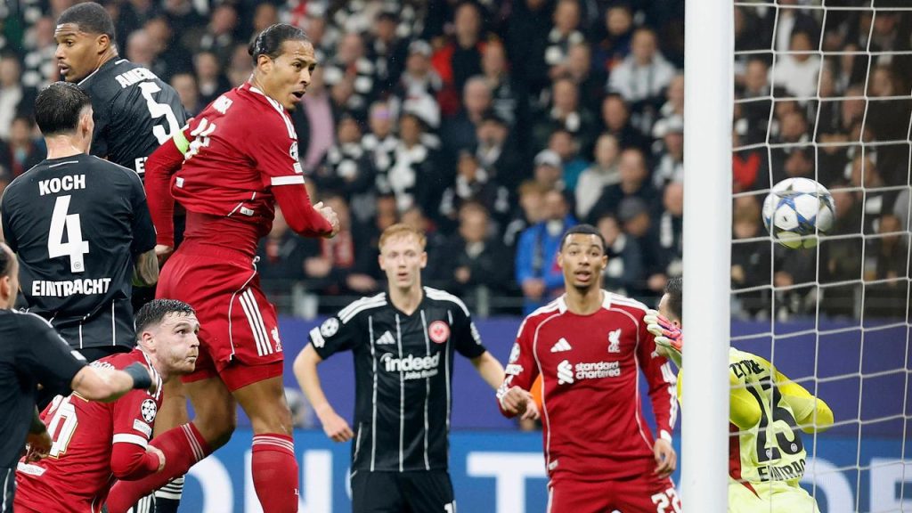 Bei einem Eckball ließ Frankfurt van Dijk ungehindert laufen und als Gakpos Ball in die Mitte flog, war das Desaster nicht mehr zu verhindern – der Niederländer wuchtete den Ball mit vollem Tempo ins Netz zur Führung (39.). Fünf Minuten später brachte Szoboszlai eine Ecke von der anderen Seite, diesmal lief Konaté frei, erneut konnte Frankfurt die Situation nicht mehr verteidigen und es stand 1:3 (44.). Bereits bei der 1:5-Niederlage bei Atlético Madrid hatte die Eintracht zwei Gegentore nach Eckbällen kassiert.