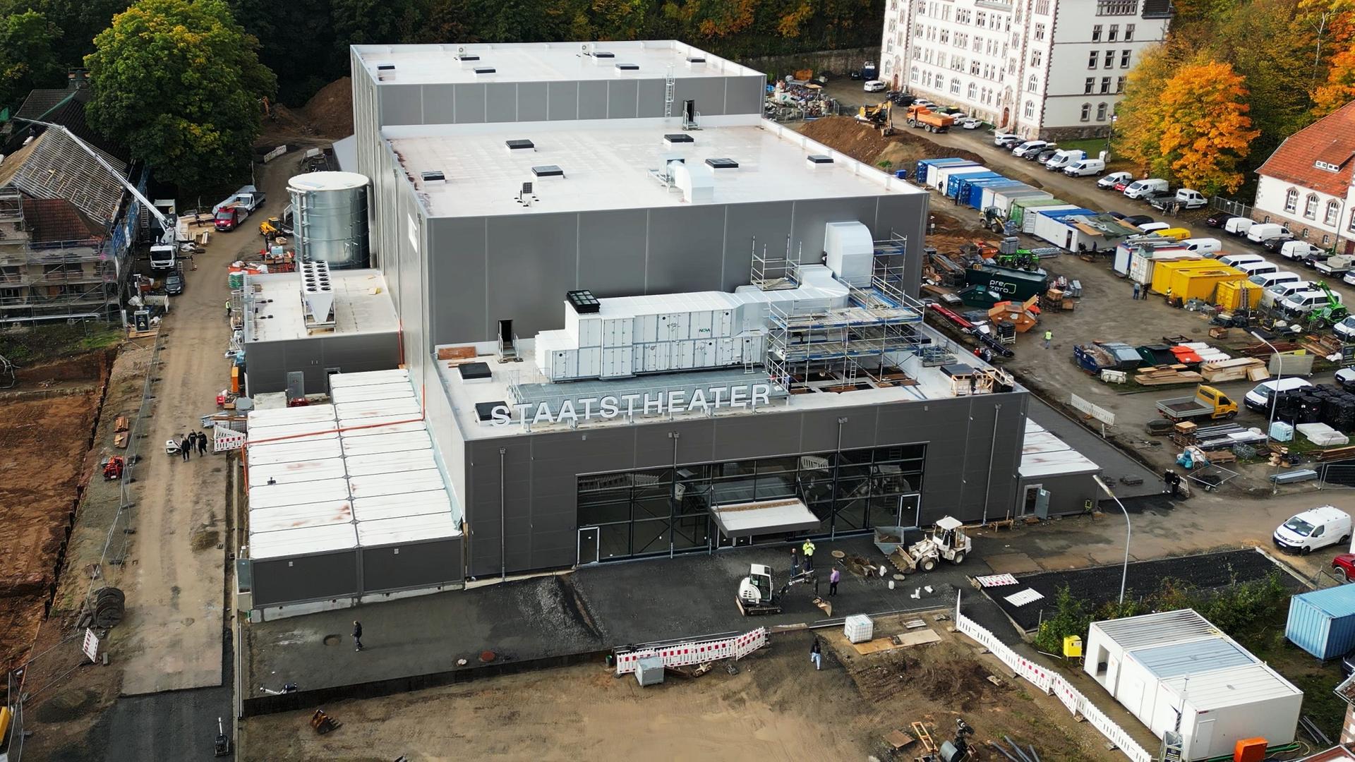 Das Opernhaus am Kasseler Friedrichsplatz muss in den nächsten sechs Jahren umfassend saniert werden. In diesem In einem Ersatzneubau wird die Zeit knappdas sogenannte „Interim“, gespielt auf einem ehemaligen Militärgelände in der Nähe des Auestadions.
