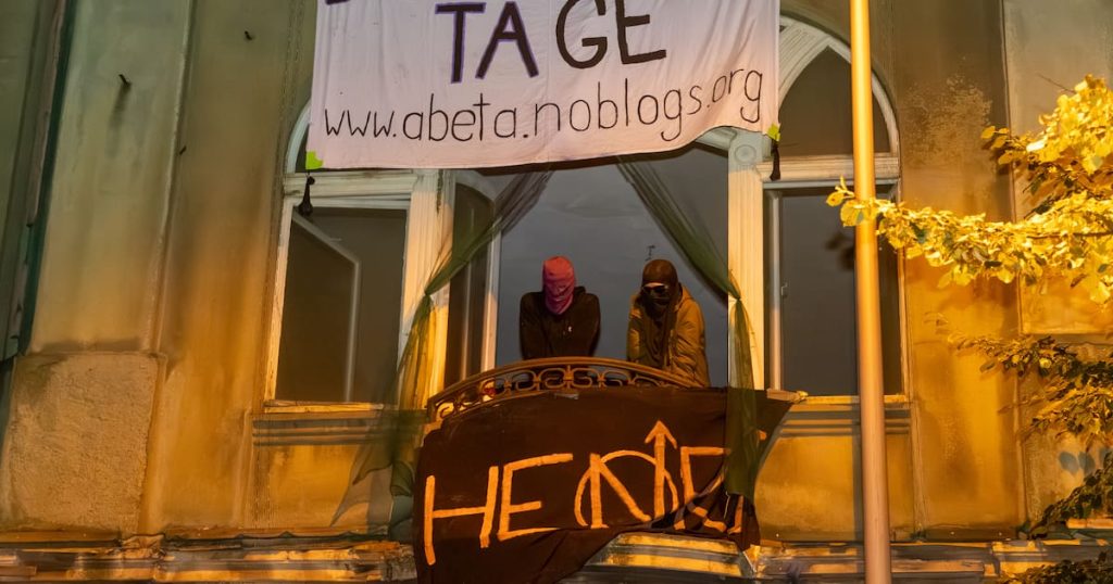 Das Gebäude in der Lützner Straße 99 wurde am frühen Freitagabend gegen 18 Uhr im Zuge einer Kundgebung einer Gruppe, die sich „Autonome Besatzungstage in Leipzig“ (Abeta) nennt, besetzt. Unter den Fenstern wurden vier sichtbare Transparente angebracht und auch Pyrotechnik gezündet. Später wurden Bilder von ins Haus gebrachten Lebensmitteln in den sozialen Medien geteilt. Dadurch kamen immer mehr Menschen in das Gebäude und wollten offenbar die Aktion unterstützen.