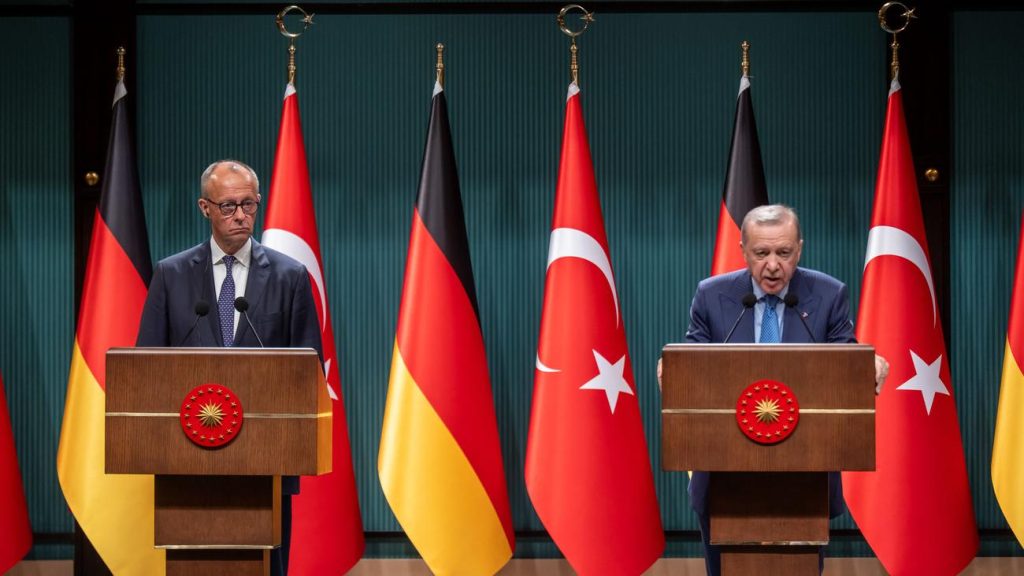 Zwischen Kanzler Friedrich Merz und der türkische Präsident Recep Tayyip Erdogan hatte während seiner Pressekonferenz einen kurzen Streit über die Lage im Gazastreifen. Erdogan hatte Israel vorgeworfen, im Gazastreifen einen Völkermord zu begehen und die Menschen dort vorsätzlich Hunger und Leid auszusetzen.