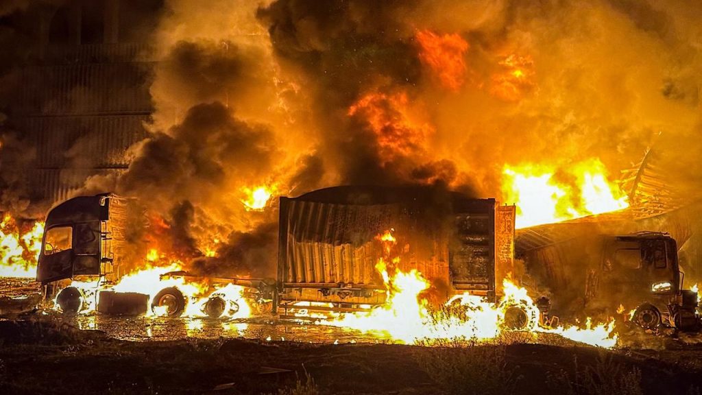 Fotos in Kiepers Telegram-Beitrag zeigen brennende Container am Hafen, einen brennenden Lastwagen und ein zerbombtes Haus. In den Behältern befanden sich Pflanzenöl und Holzpellets, schrieb er. Allerdings wurden die meisten russischen Drohnen von der ukrainischen Luftabwehr abgefangen.
