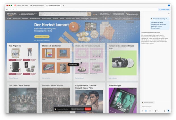 Und selbst dann müssen Sie damit rechnen, dass Atlas ein paar Minuten braucht, um Ihre Anfrage vollständig zu bearbeiten. Die KI zerlegt Ihre Aufgabe in einzelne Schritte, die dann nach und nach ausgeführt werden müssen. Die Aufgabe, die beste Sonnencreme auszuwählen und bei Amazon in den Warenkorb zu legen, dauerte im Test insgesamt drei Minuten.