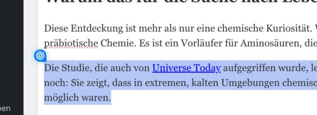 >Wenn Sie Sätze in einem Textfeld markieren, können Sie durch Klicken auf einen kleinen blauen Punkt festlegen, wie diese Sätze umformuliert werden sollen. Praktisch zum Beispiel im Webinterface eines Maildienstleisters.
