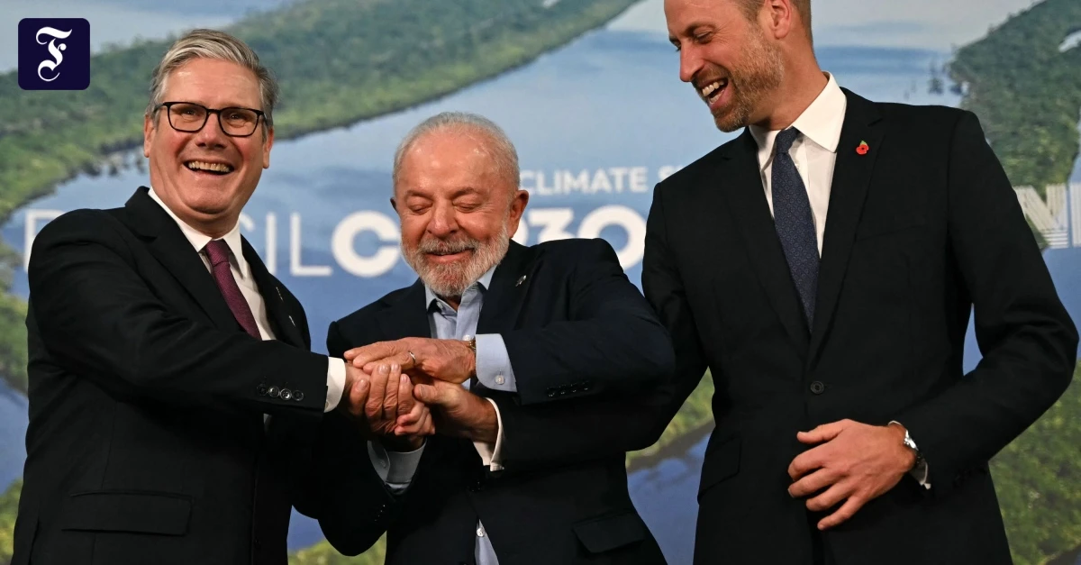 Prominente Gäste: Brasiliens Präsident Lula da Silva empfängt den britischen Premierminister Starmer und Prinz William (rechts).AFP