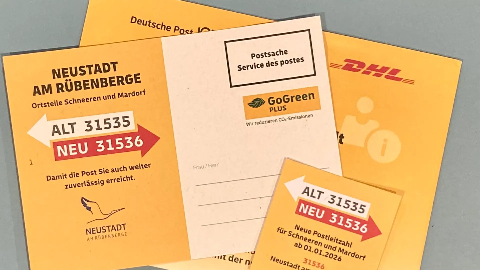 Personalausweis, Visitenkarte, Meldeunterlagen: Die rund 3.500 Bürgerinnen und Bürger der Ortsteile Mardorf und Schneeren in Neustadt am Rübenberge (Region Hannover) müssen ihre Adresse ändern lassen – auch wenn sie nicht umziehen. Ab Januar haben die beiden Orte am Steinhuder Meer eine neue Postleitzahl: 31536 statt bisher 31535. Damit Lieferanten, Postboten und Rettungsdienste weiterhin zuverlässig an der richtigen Adresse ankommen, läuft eine Übergangsphase für sechs Monate.