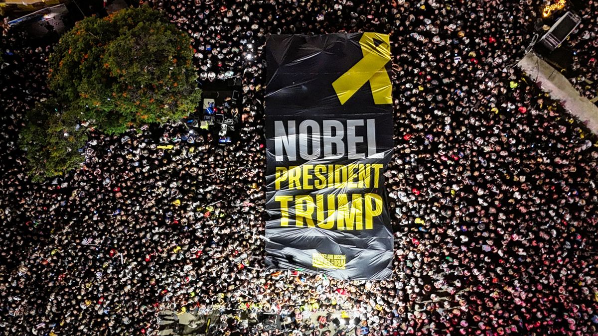Demonstranten jubeln Donald Trump zu und pfeifen gegen Netanyahu
