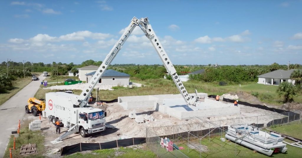 Der australische Bauroboter Hadrian vom Robotikunternehmen FBR Limited kann nun noch schneller autonom Hausstrukturen bauen. Der Roboter soll maximal 360 Steine ​​pro Stunde verlegen können. Bisher waren es 300 Steine. Ein Praxistest zeigt, dass der tatsächliche Wert deutlich geringer ausfällt, sobald der Roboter eine kompliziertere Wandkonstruktion selbstständig aufbauen soll.