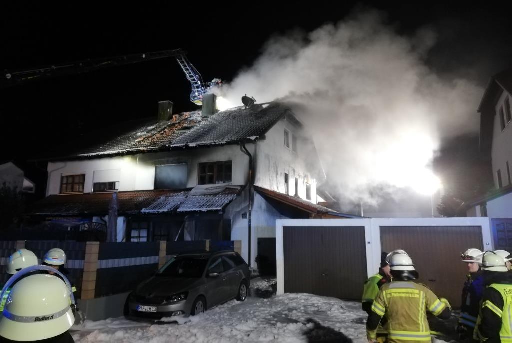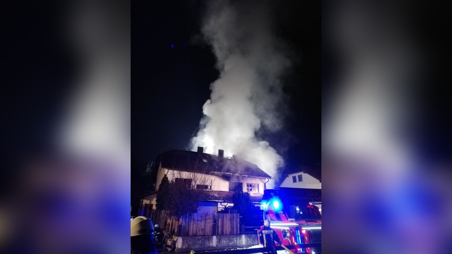 Aus dem brennenden Doppelhaus stieg sichtbar eine Rauchsäule auf. – Foto: Ellen Kellerer