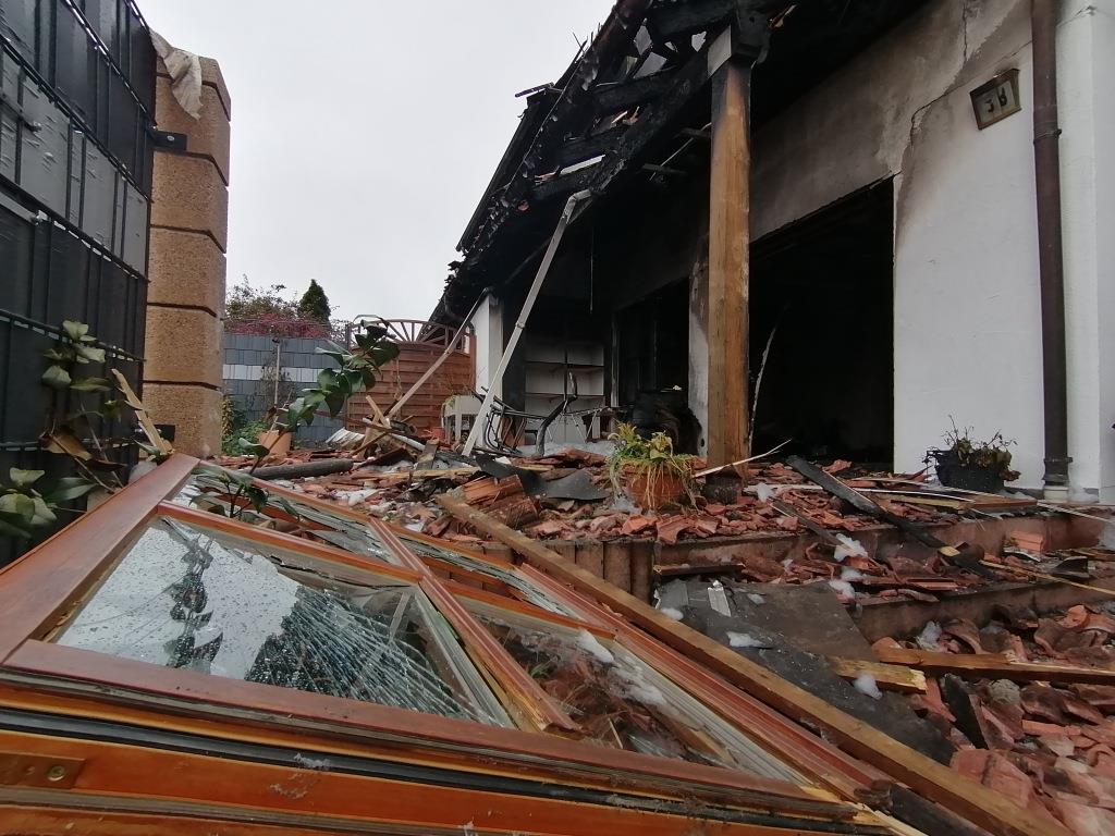 Der Schaden an der Doppelhaushälfte ist verheerend. – Foto: Michael Kraus