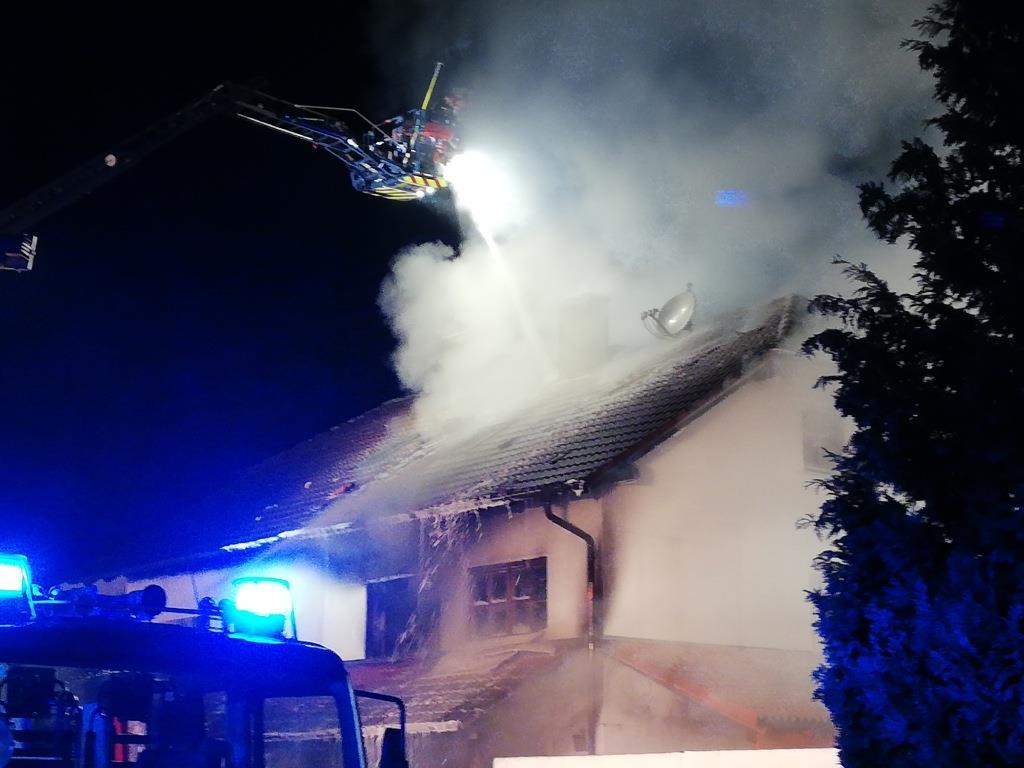 Als am Morgen erneut Rauch im Dachstuhl auftrat, löschten die Feuerwehrleute den Brand… – Foto: Michael Kraus