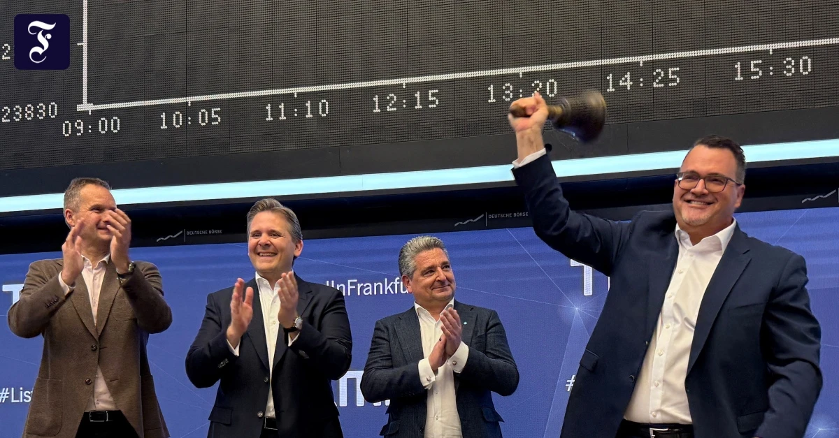 Serhat Gündogan musste mehrfach um Geduld bitten. Der Händler der Baader Bank konnte am Montag in Frankfurt den ersten Preis der TKMS-Aktie bekannt geben. Doch die Nachfrage nach den Papieren war so groß, dass die Eröffnungsauktion nicht wie geplant um 9 Uhr endete, sondern mehrfach verlängert wurde. „Es sieht sehr, sehr gut aus“, sagte Gündogan kurz nach 9 Uhr. „Es sieht noch besser aus“, dann ein paar Minuten später. Der erste Preis um 9:11 Uhr: 60 Euro je Aktie. Wenige Minuten später waren es bereits 65 Euro. Nach einer halben Stunde schoss der Preis auf 97 Euro.