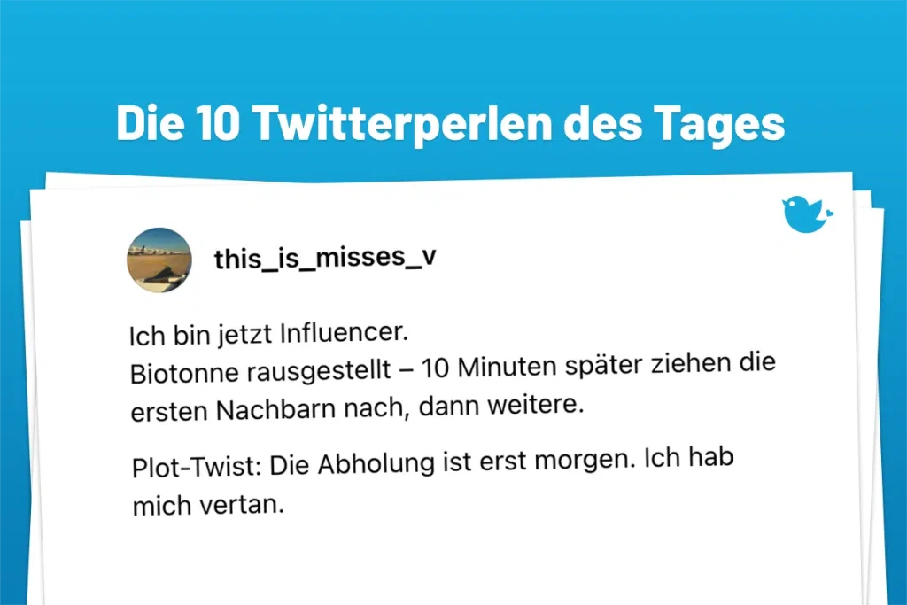 Unabhängig davon, ob Sie Ihre Ohren jetzt mit neuen Löchern dekorieren, während Sie scrollen oder einfach nur mit dem Schichtschlüssel kämpfen: Wir haben die besten Beiträge wieder gesammelt, um Sie am Samstagabend zu versüßen. Hier kommen Sie: Die 10 Twitter -Perlen des Tages – garantiert schmerzlos und nur auf Anfrage in Großbuchstaben!