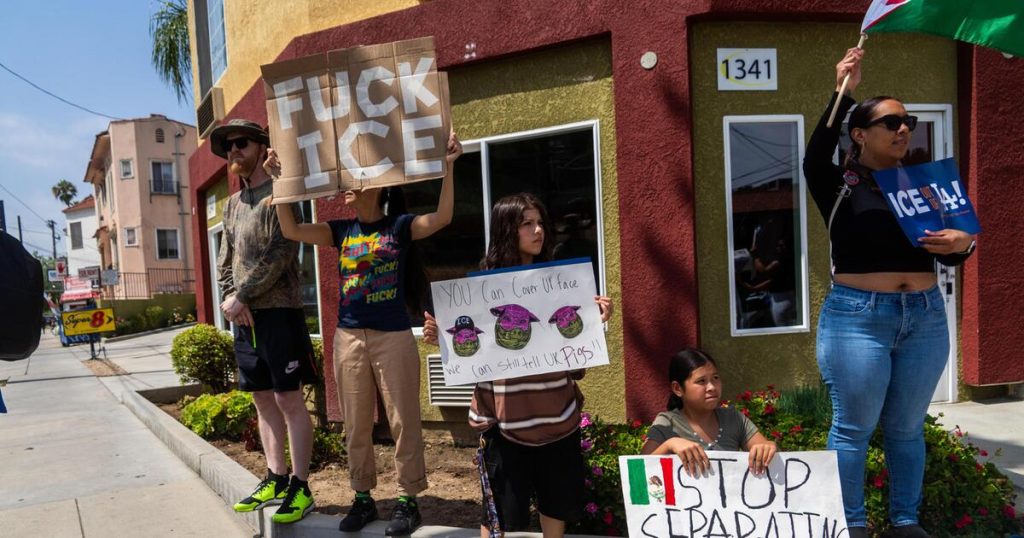 Am 21. Juni versammelten sich Demonstranten an der Ecke des Sunset Boulevard und Vin Scully in Los Angeles, um gegen das Eis und Trump zu protestieren. (Archivbild)