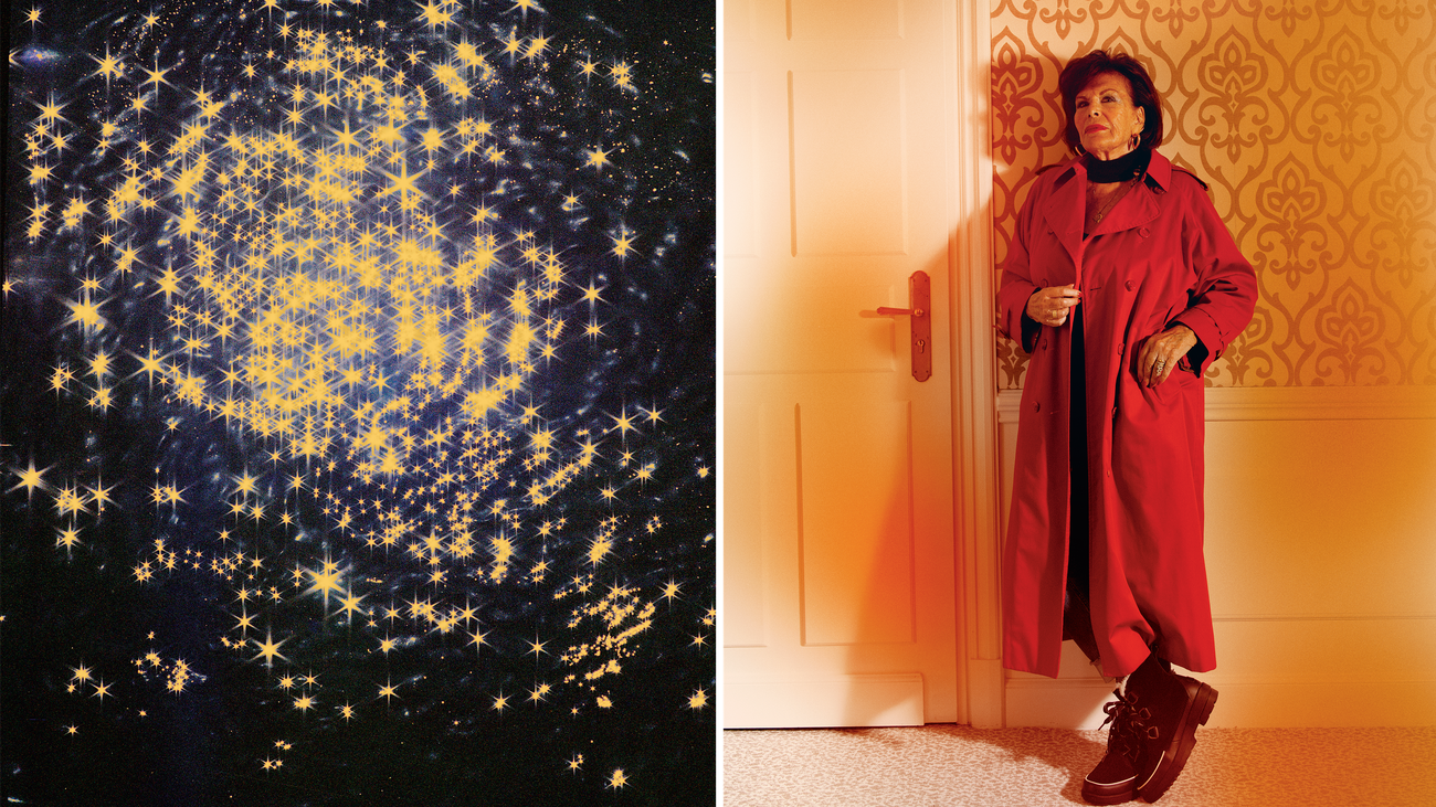 Elizabeth Teissier betritt die Suite des Genfer Hotels D’Angleterre in Jeans und Turnschuhen. Sie kommt eine halbe Stunde zu spät, ihren feuerroten Mantel legt sie aufs Sofa. Teissier ist 86 Jahre alt und immer noch eine beeindruckende Diva. Um den Hals trägt sie eine lange goldene Kette mit den Sternzeichen. Was auch immer man über die Astrologie denken mag – dieses Metier hat ihr ein sehr interessantes Leben beschert. Ihr Mann Gerhard Hynek, 79, begleitet sie zu dem Gespräch. Er war einmal Journalist bei der Bunten, dann Drehbuchautor. Sie waren miteinander in Kontakt gekommen, als er sie am Telefon interviewte. Die beiden sind seit 1981 ein Paar, der Österreicher Hynek ist Co-Autor einiger ihrer Bücher und unterstützt sie beim Erstellen von Horoskopen, die sie noch immer für ihre Klienten anfertigt. Auch in das Interview schaltet er sich immer mal wieder ein.