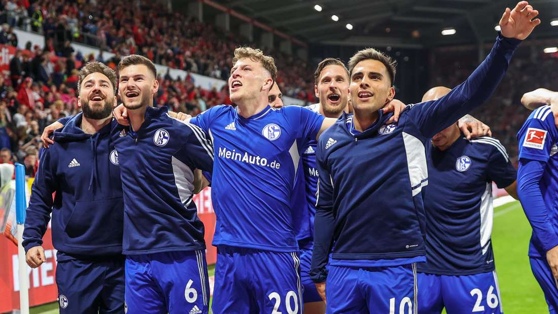 Schalke -Spieler jubeln nach einem Sieg gegen den 1. FSV Mainz 05