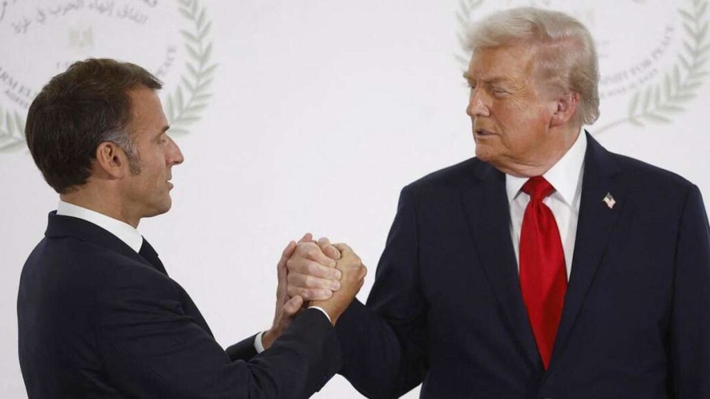 Nun sorgte ihr gemeinsamer Händedruck in Ägypten für Aufsehen, das wie bei den anderen Staatsvertretern mit medialer Aufmerksamkeit unter dem Motto „Frieden 2025“ stattfand. Trump wartete bereits auf der Bühne, als Macron auf ihn zukam. Zu Beginn klopften sich beide gegenseitig auf die Schulter. Unten können Sie sehen, dass sie reden und entschlossen aussehen. Den Fotografen kommt kaum ein Lächeln über die Lippen. Es scheint fast so, als wolle Trump mit Macron angeben.