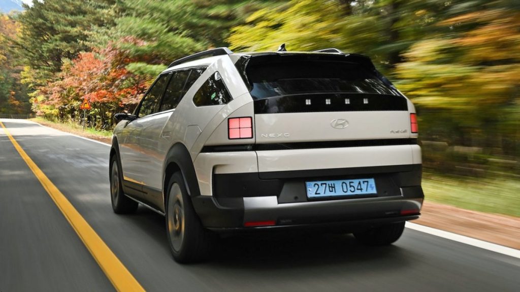 Der frontgetriebene Nexo wiegt rund zwei Tonnen und ist mit 4,75 m etwa so lang wie ein BMW X3. Es fühlt sich beim Anfahren nicht so giftig an wie manche batterieelektrischen Fahrzeuge, bietet aber keine schlechte Fahrleistung. Wer möchte, kann im Nexo in 7,9 Sekunden auf 100 km/h beschleunigen und die Geschwindigkeit auf 179 km/h steigern. Um die Trägheit der Brennstoffzelle bei ihrer maximalen Nettoleistung von 94 kW auszugleichen, kann der Nexo für Leistungsspitzen auf 80 kW aus einer Batterie zurückgreifen. Der Hersteller verspricht, dass sein Energieinhalt von 2,64 kWh ausreicht, um die meisten Anforderungen als Puffer für die Brennstoffzelle zu erfüllen. Darüber wird auch die Batterie geladen, die auch per Rekuperation aus den Elektromaschinen geladen werden kann.