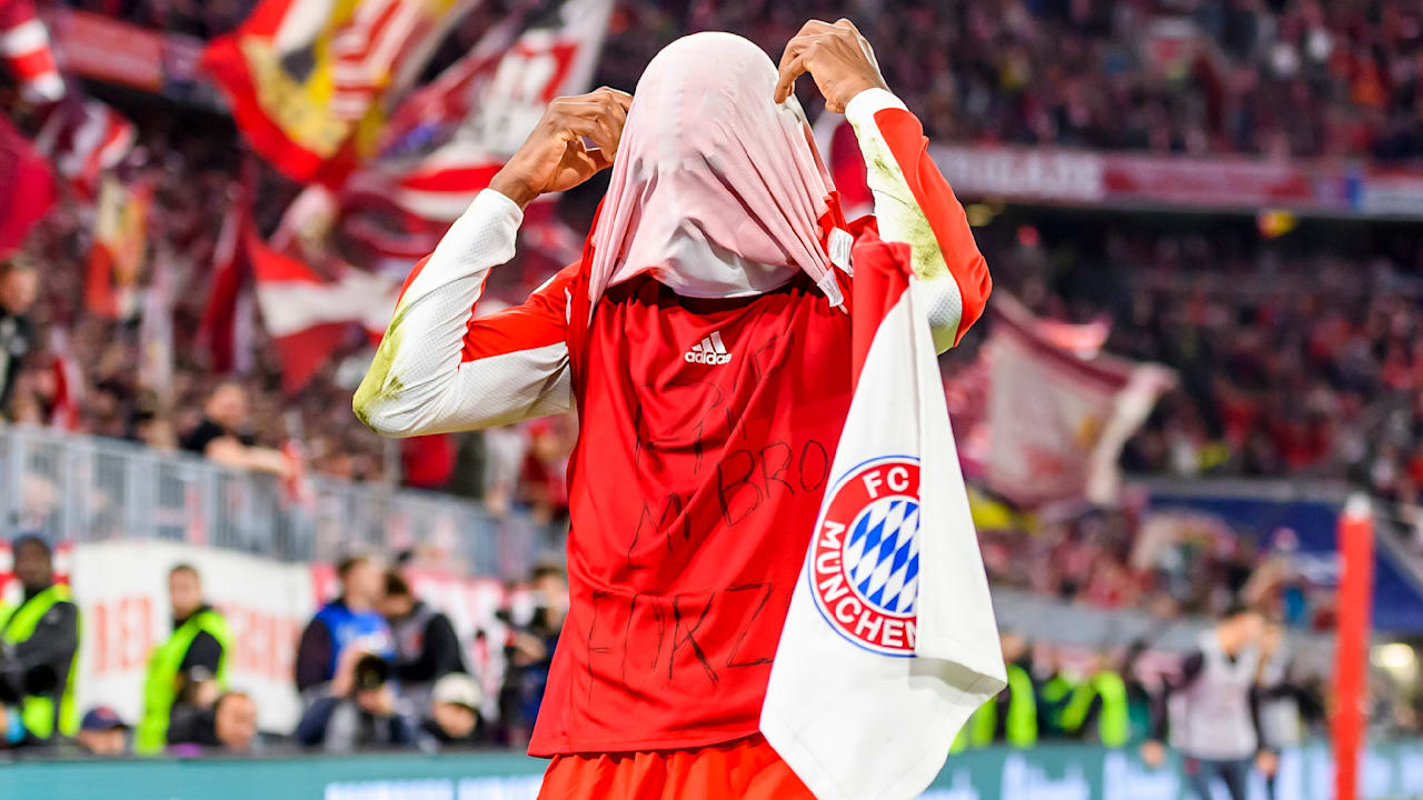 Der Stürmer zieht sein Trikot hoch. Auf seinem Unterhemd steht eine Nachricht: „RIP, My Bro Fokzo.“