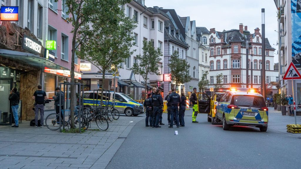 Die Polizei sperrte am Samstag den Tatort auf dem Marktplatz nahe einer zentralen Bushaltestelle und unweit einer Fußgängerzone mit Absperrband ab. Vor dem Sportwettbüro parkten mehrere Streifenwagen, die Spurensicherung war vor Ort.