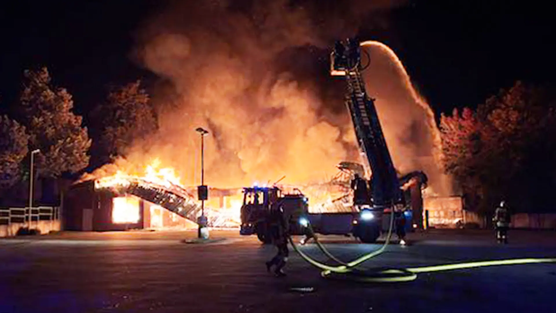Wie eine Polizeisprecherin dem NDR Niedersachsen sagte, wurde der Brand kurz nach 5 Uhr morgens gemeldet. Das Feuer brach im hinteren Teil des Gebäudes aus und breitete sich dann auf den gesamten Markt aus. Der Supermarkt brannte vollständig ab. Nach Angaben der Polizei war auch eine angrenzende Schule betroffen. Dort wurden Fenster beschädigt. Die Brandursache ist noch unklar. Derzeit sind Einsatzkräfte noch am Brandort und machen Drohnenaufnahmen. Die Feuerwehr reißt das Gebäude mit einem Bagger ab.