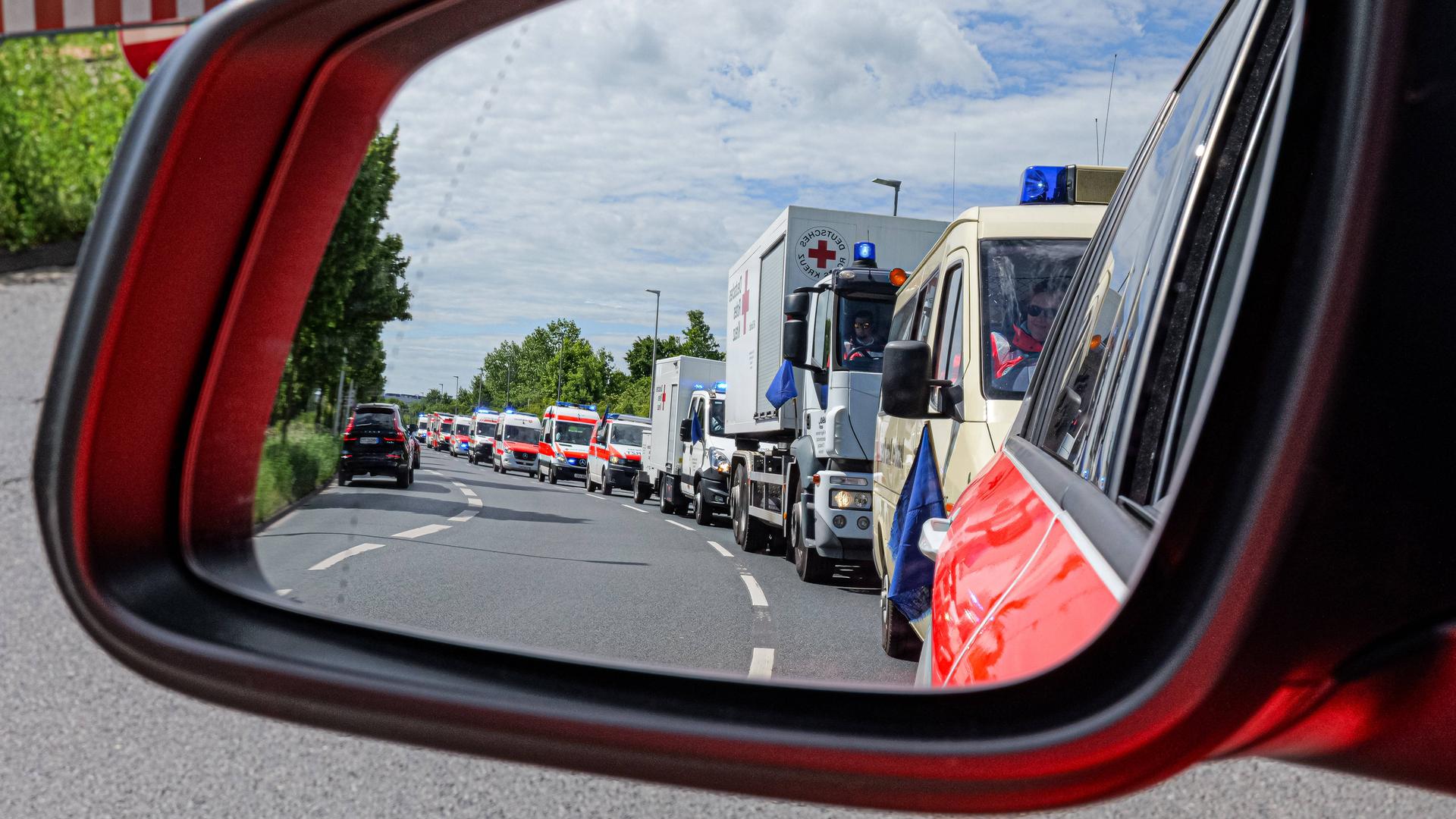 Lange Kolonnen von Rettungs- und Katastrophenschutzfahrzeugen sorgen heute in Südhessen für einen ungewöhnlichen Anblick. In einer Großübung üben sie das Fahren in der Gruppe und die Koordination zwischen den Einsatzkräften.