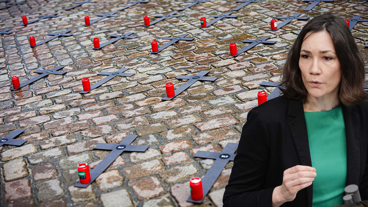 Hannover: Zahlreiche Kreuze liegen neben brennenden Grabkerzen auf dem Opernplatz – stellvertretend für die Toten der Ahrtalflut. Der Protest richtet sich gegen die Ernennung von Anne Spiegel zur Sozialdezernentin der Region Hannover