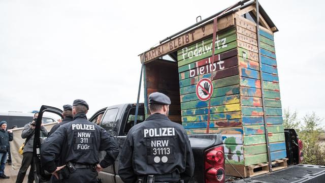Een Bretterhaus uit dem Hambacher Forst Wird Teil der nieuwe Dauerausstellung im Bonner Haus der Geschichte. Laut Museum waar de Bretterverschlag in het Saksische Pödelwitz als “Soli-Baumhaus” entstanden en spater nach NRW worden gebracht. Dort hatte die Polizei das Häuschen beschlagnahmt.