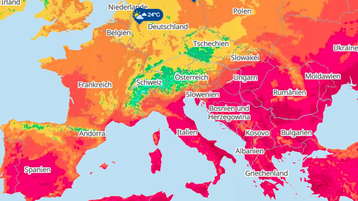 Die „Hitzekuppel“ verursacht extreme Temperaturen in Südeuropa von Kroatien bis Spanien.
