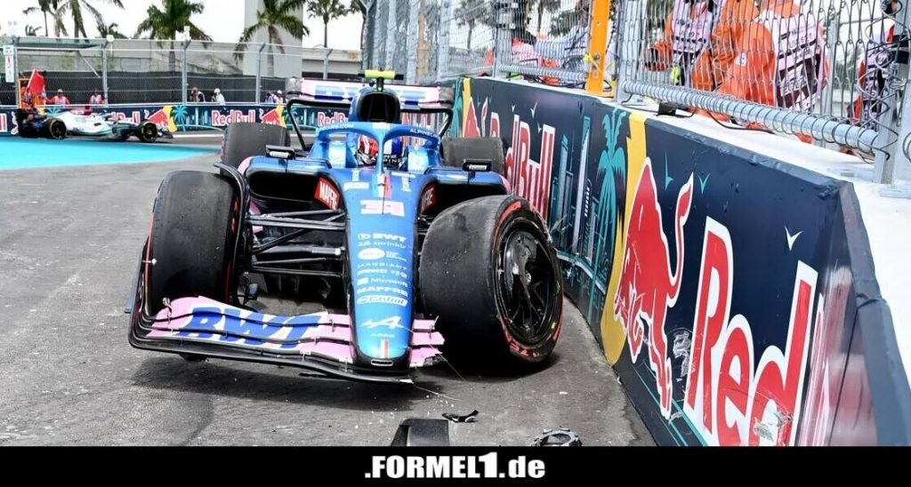 Esteban Ocons Alpine nach dem Unfall in Miami 2022