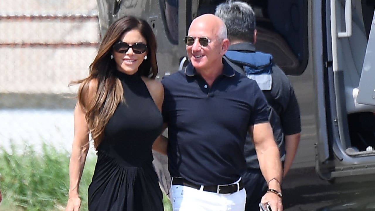 Amazon -Milliardäre trafen sich am Donnerstag Jeff Bezos und seine zukünftige Braut Lauren Sánchez zu ihrem drei -tägigen Hochzeitsspektakel in Venedig. Bezos winkten aus einem Wassertaxi, als er und Sánchez mit zwei Sicherheitssoten im Schlepptau am Dock des Aman -Hotels am Grandkanal ankamen.