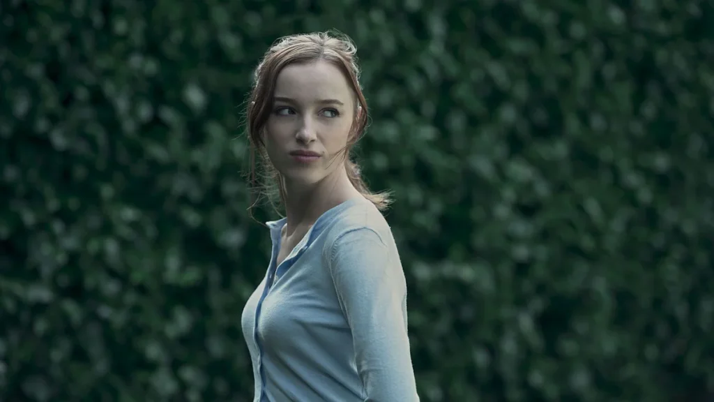 „Wie schön, dass wir uns jetzt kennenlernen“, sagt die junge Frau vor dem Spiegel. Liz probt einen wichtigen Auftritt, Phoebe Dynevor spielt sie mit gekünstelter Natürlichkeit, maskenhaftem, eher langweiligem Gesicht, roten, glatten Haaren, ihr Lächeln ist erschreckend seelenlos. Sie ist eine Influencerin. Sie muss den Auftritt, auf den sie sich gerade vorbereitet, die erste Begegnung mit ihrer zukünftigen Schwiegermutter Ellen, ohne mediales Drumherum, von Frau zu Frau, absolvieren. Aber in Wirklichkeit wird der Aufstand Schritt für Schritt geprobt, der politische Umsturz, die Umstrukturierung Amerikas.