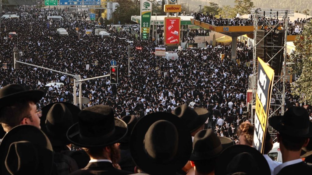 Hunderttausende ultraorthodoxe Juden demonstrieren in Jerusalem gegen den Militärdienst. Manche klettern in die Hülle eines Hochhauses. Dann kommt es zur Katastrophe.