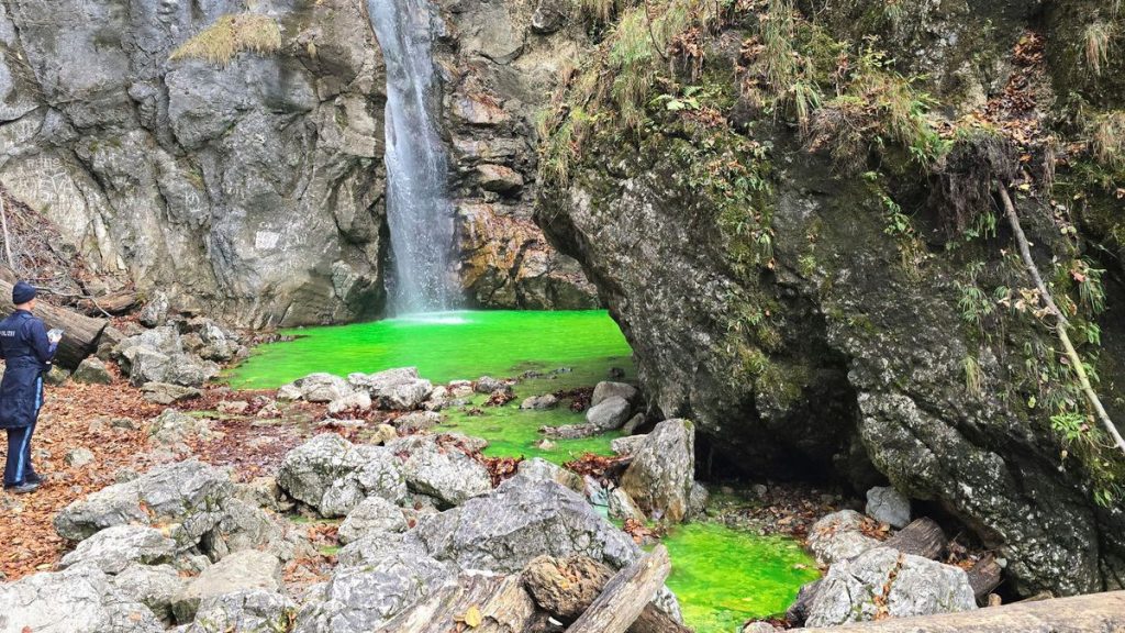 Neongrün statt glasklar: Wanderer fanden am Wochenende den Lainbach im bayerischen Landkreis Bad Tölz in einem ungewöhnlichen Zustand. Das Wasser war verfärbt.