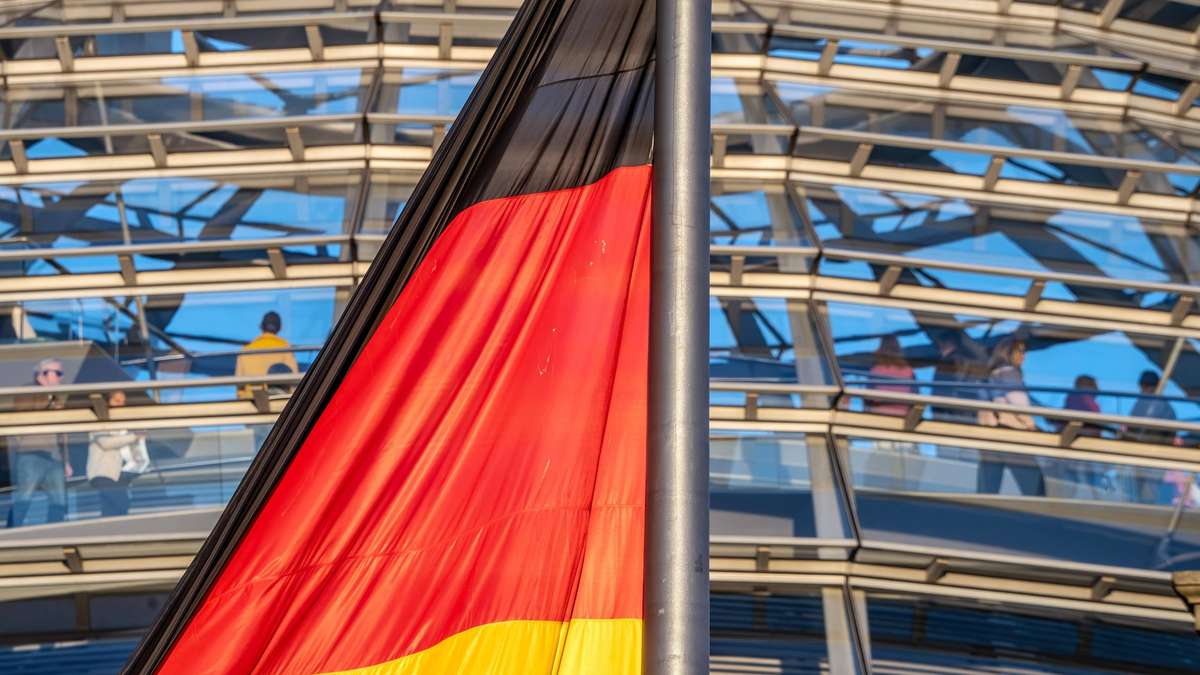 Die deutsche Flagge vor dem Reichstag: Zum ersten Mal seit 35 Jahren bezeichnet die Regierung den Krieg als echte Gefahr. Der BND-Chef warnte noch am selben Tag: „Wir stecken im Feuer“. Die Bürger sollten sich auf diese Weise vorbereiten. © IMAGO/Wolfgang Maria Weber