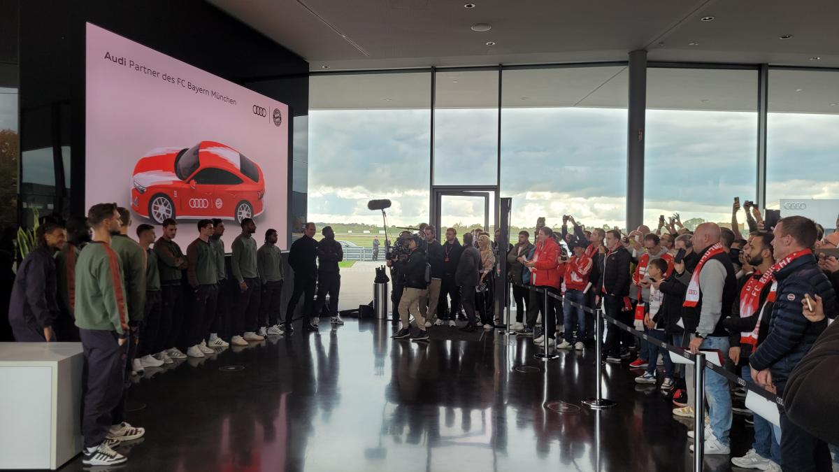 Nach fünf Jahren war Neuburg erneut an der Reihe, das Auto an den Rekordmeister zu übergeben. Beim letzten Termin im Jahr 2020 waren aufgrund der Corona-Pandemie keine Gäste zugelassen. Diesmal ist es anders. Aus tausenden Teilnehmern, die an diesem Tag den Stars ganz nah sein durften, waren 100 Audi-Mitarbeiter ausgelost – 75 aus Ingolstadt, 25 aus Neckarsulm. Einige von ihnen dürfen einem Bayern-Spieler persönlich den Schlüssel für das neue Auto übergeben. An einer Glasscheibe stehen ein paar Kinder mit ihren Eltern, die zwar nicht hinein dürfen, aber zumindest einen Blick auf ihre Idole erhaschen können.