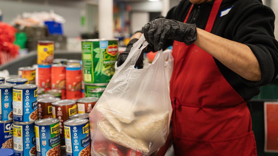 Eine Frau packt in einer Lebensmittelbank in New York Lebensmittel in eine Tüte. Der Shutdown in den USA droht nun die Ärmsten des Landes hart zu treffen.