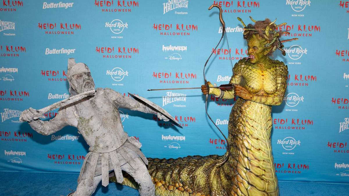 Klum erscheint als Medusa, ihr Mann als versteinerter griechischer Soldat. © CJ Rivera/Invision/dpa