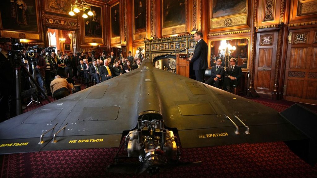 Bei seinem Auftritt im Londoner Parlament stand Sikorski neben einer Drohne: Es soll sich um eine iranische Kamikaze-Drohne vom Typ Shahed-136 handeln, die von Russland eingesetzt und über der Ukraine abgeschossen wurde. Sikorski rief die europäischen Nationen dazu auf, bei ihrer Unterstützung für die Ukraine, die von Russland angegriffen wird, „auf Kurs zu bleiben“.