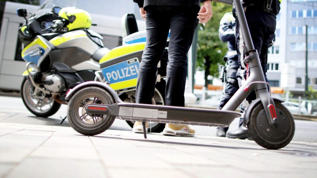 Das Kind stand vor der Frau auf dem E-Scooter. Nach Angaben der Polizei war der Junge mit einem Fahrradschloss am Lenker festgebunden.