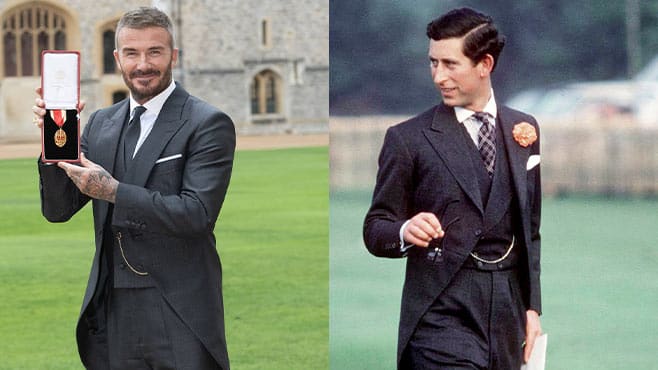 Als David Beckham Als er am Dienstag im Schloss Windsor kniete, als König Charles ihn zum Ritter schlug, trug er einen maßgeschneiderten dreiteiligen Anzug – entworfen von seiner Frau. Victoria Beckham wurde von einem Foto des Königs in Ascot aus dem Jahr 1979 inspiriert.