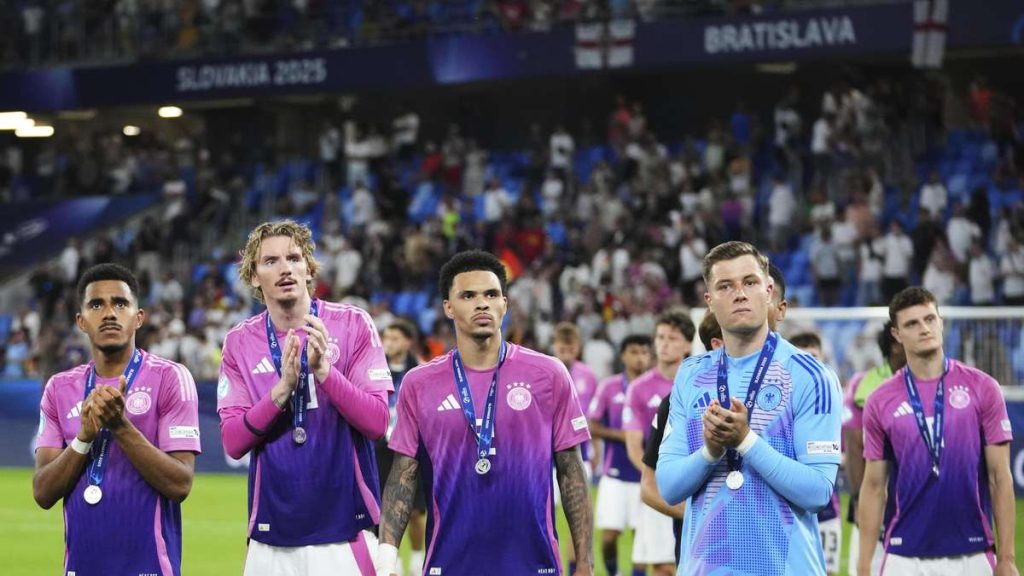 Bratislava/München/Stuttgart-Die U21-Europameisterschaft ist beendet und endete für das deutsche Team mit einer Enttäuschung: 2: 3 Nach der Erweiterung verlor das Team am Samstagabend gegen England, mit viel Aluminium-Pitch.