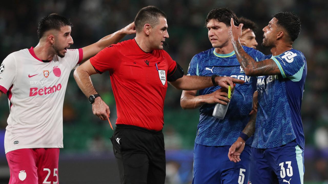 Beim 2:1 (0:1)-Sieg über Marseille spielte Sporting die gesamte zweite Halbzeit in Überzahl, nachdem der Brasilianer in der Nachspielzeit der ersten Halbzeit mit einer Gelb-Roten Karte vom Feld musste.