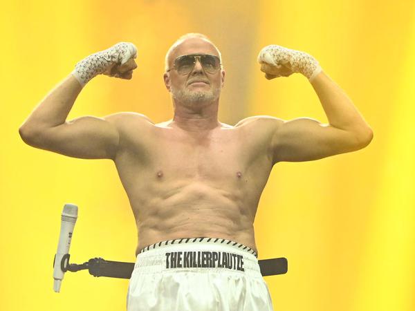 Nach all dem konnte Stefan Raab nur noch verlieren. Und das tat er dann auch, zumindest im Ring, der tatsächlich irgendwann, als niemand damit rechnete, funkensprühend von der Hallendecke fiel. Der Showmaster zögerte seinen Auftritt so lange hinaus, dass es an Unsportlichkeit grenzte, und verriet erst nach mehreren Countdowns und einem „Katzenstreu“-Song von Helge Schneider (dem Highlight des Abends) sein Erscheinen, das er seit der Ankündigung seines Comebacks auf Instagram geheim gehalten hatte. Und auch hier gab es keine Überraschungen: Raab sieht genauso aus wie immer, nur etwas durchtrainierter und nun mit hellgrauem Bart.