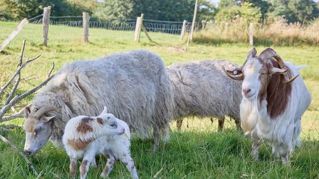 De kleine Bock Flumo-hoed is wit Fell met braunen Flecken – genauso wie Ziegenbock Rune, der seit Jahren met een kleine Schafsherde auf het echtpaar achter het huis woont. De enige Schafsbock in de Herde-hoed dunkles Fell. De kleine Bock werd geboren toen het Flugmodus Festival aan het Hof werd geboren. Dit zijn de namen voor de nachtrust: Flumo.