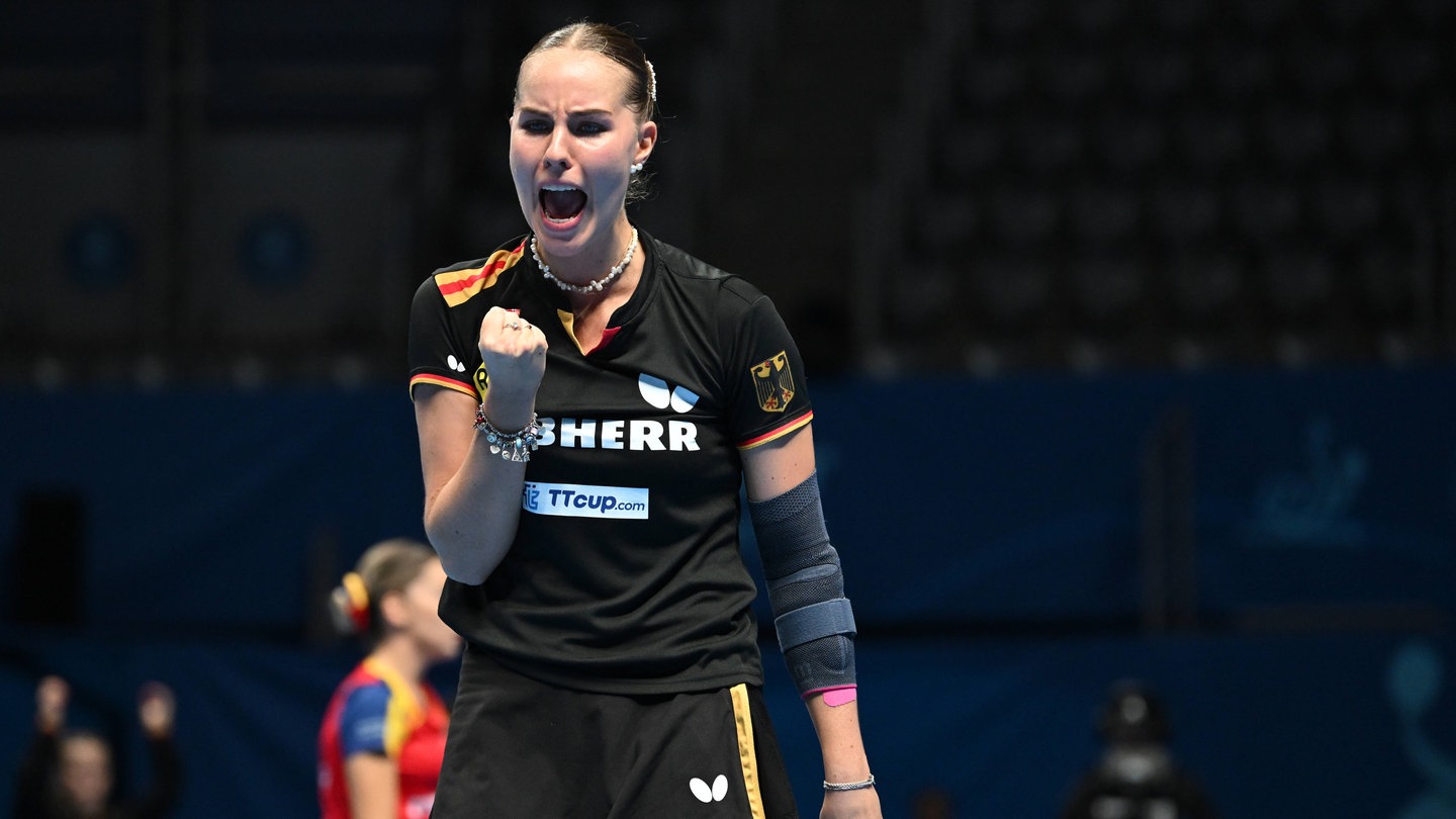 Die 19-jährige Kaufmann gehörte bereits 2023 und 2021 zum Kader. Doch dieser Titelgewinn ist der erste, bei dem ohne sie nichts ging. Die selbstbewusste Junioren-Weltmeisterin besiegte im Finale Europas beste Einzelspielerin Bernadette Szöcs. Normalerweise spielt sie das erste Spiel. Und sie ist immer die Erste, die die Interviews gibt.