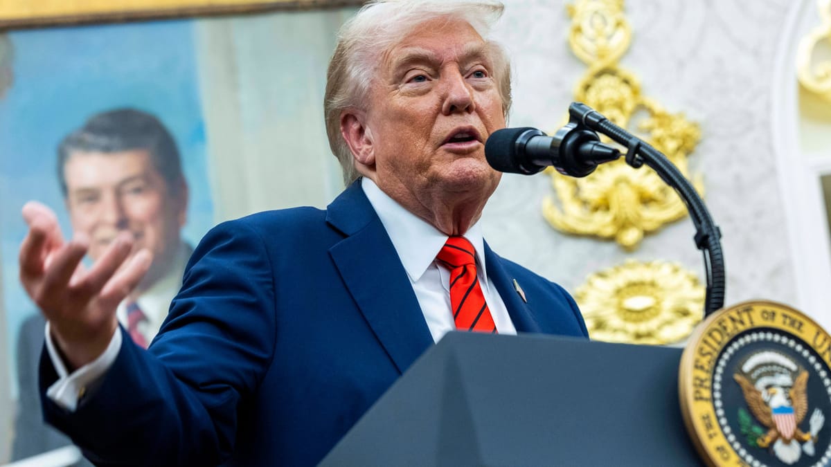 Donald Trump spricht im Weißen Haus (Archivbild): Der US-Präsident hat Nationalgardisten nach Illinois geschickt. (Quelle: IMAGO/Shawn Thew – Pool über CNP/imago)