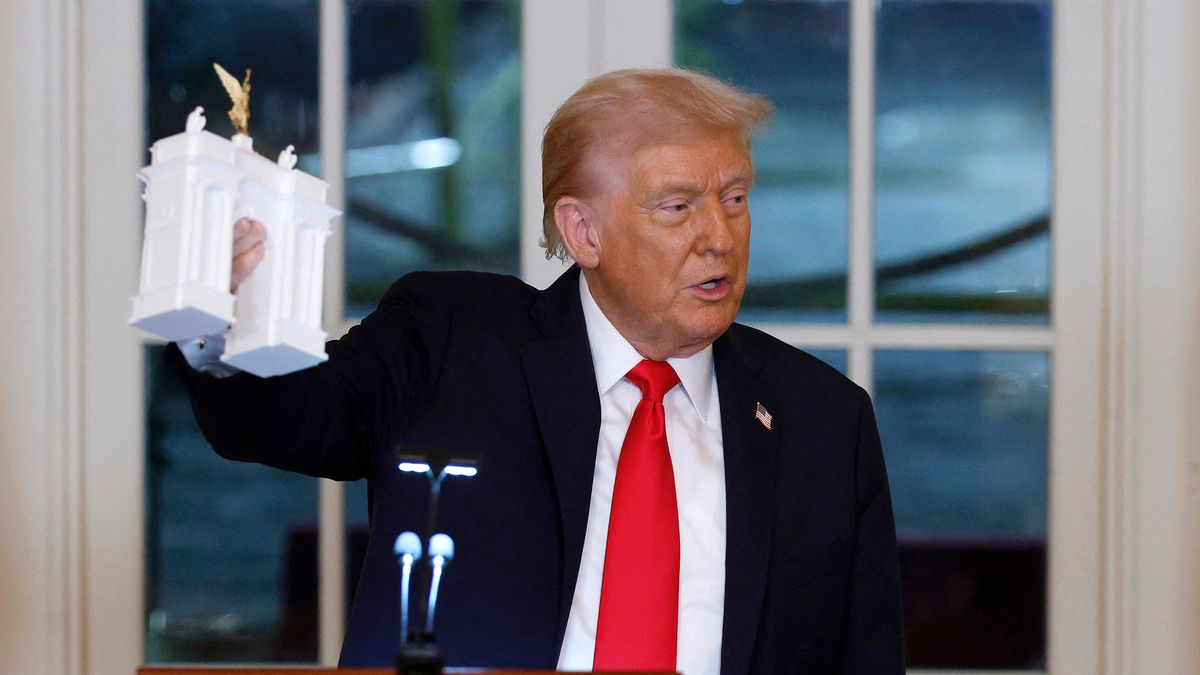 Medienberichten zufolge waren am Mittwoch Vertreter von Technologieunternehmen wie Amazon, Apple, Meta, Google und Microsoft bei der Veranstaltung anwesend. Trump zeigte ihnen unterschiedlich große Modelle eines weißen Bogens mit einem goldenen Engel darauf. Ihm gefallen die größten von ihnen am besten, zitierten die Medien den US-Präsidenten.